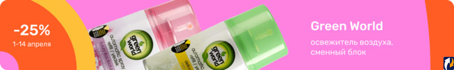 По 14 апреля во всех магазинах сети, интернет-магазине и мобильном приложении "Улыбка радуги" действует скидка 25% на освежители воздуха Green World.