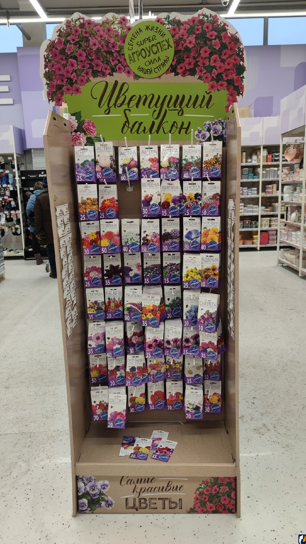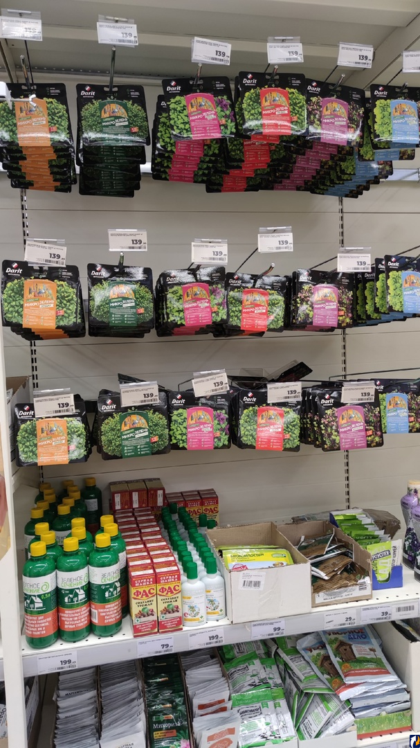 Сеть магазинов "Магнит Семейный" в разделе сезонных товаров выставила товары для садоводов. Как передает корреспондент ЦДИ, покупатели найдут семена, цветочные горшки, агрохимию, землю и световые лампы.