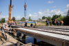 Монтаж балок пролетного строения ведется на мосту через реку Толбица