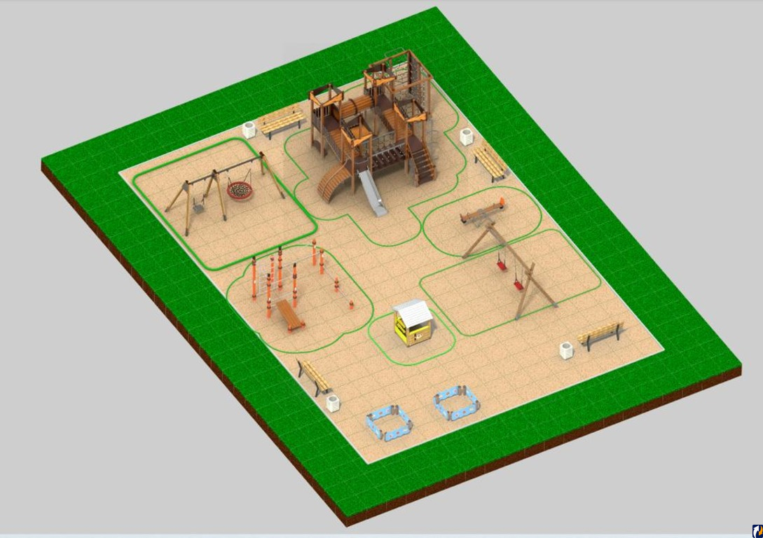 Подрядная организация произведет разработку грунта, планировку площадей и выполнит устройство песчаного основания. Затем на площадке будут смонтированы детский игровой комплекс, воркаут-комплекс, качели с цепными подвесами, детский домик-беседка, качалка-балансир. Площадь детской площадки составит около 300 м². На общественной территории также появятся кабинки для переодевания, четыре скамьи на бетонном основании со спинкой и четыре бетонные урны.