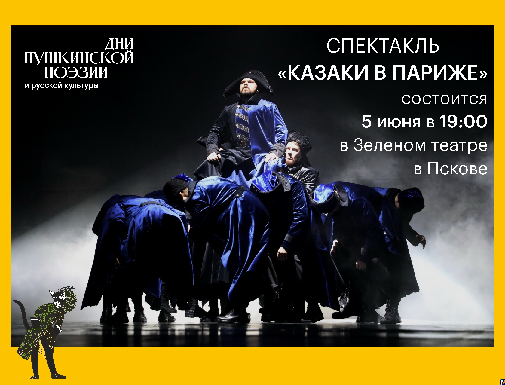 Сегодня, 5 июня, в Зеленом театре в Пскове в рамках Дней Пушкинской поэзии и русской культуры состоится показ вокально-хореографического спектакля «Казаки в Париже».
