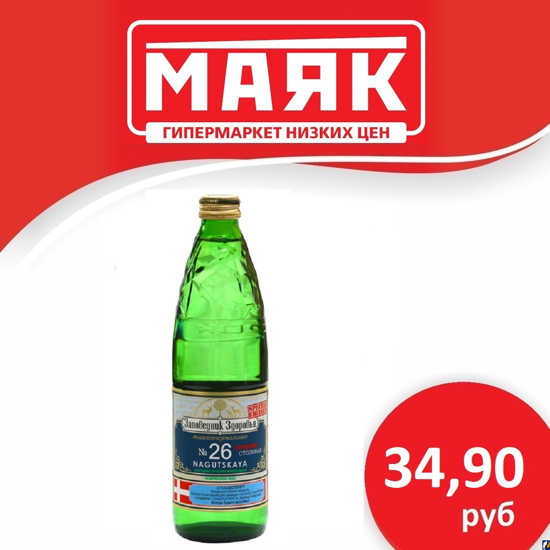- Вода минеральная лечебно-столовая "Заповедник здоровья" 26, ст/б 0,5 л продается по 34,90 рублей