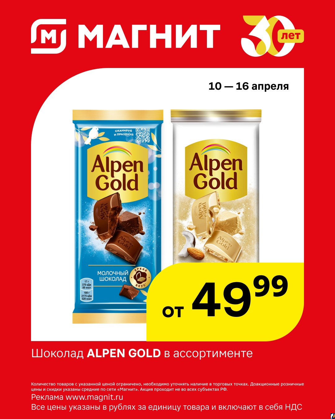 Курица гриль, сливочные сосиски «Вязанка Сливушки», шоколад Alpen Gold и кофе Monarch Asian Selection скидками до 61% ждут псковичей в торговой сети "Магнит" с 10 по 16 апреля.