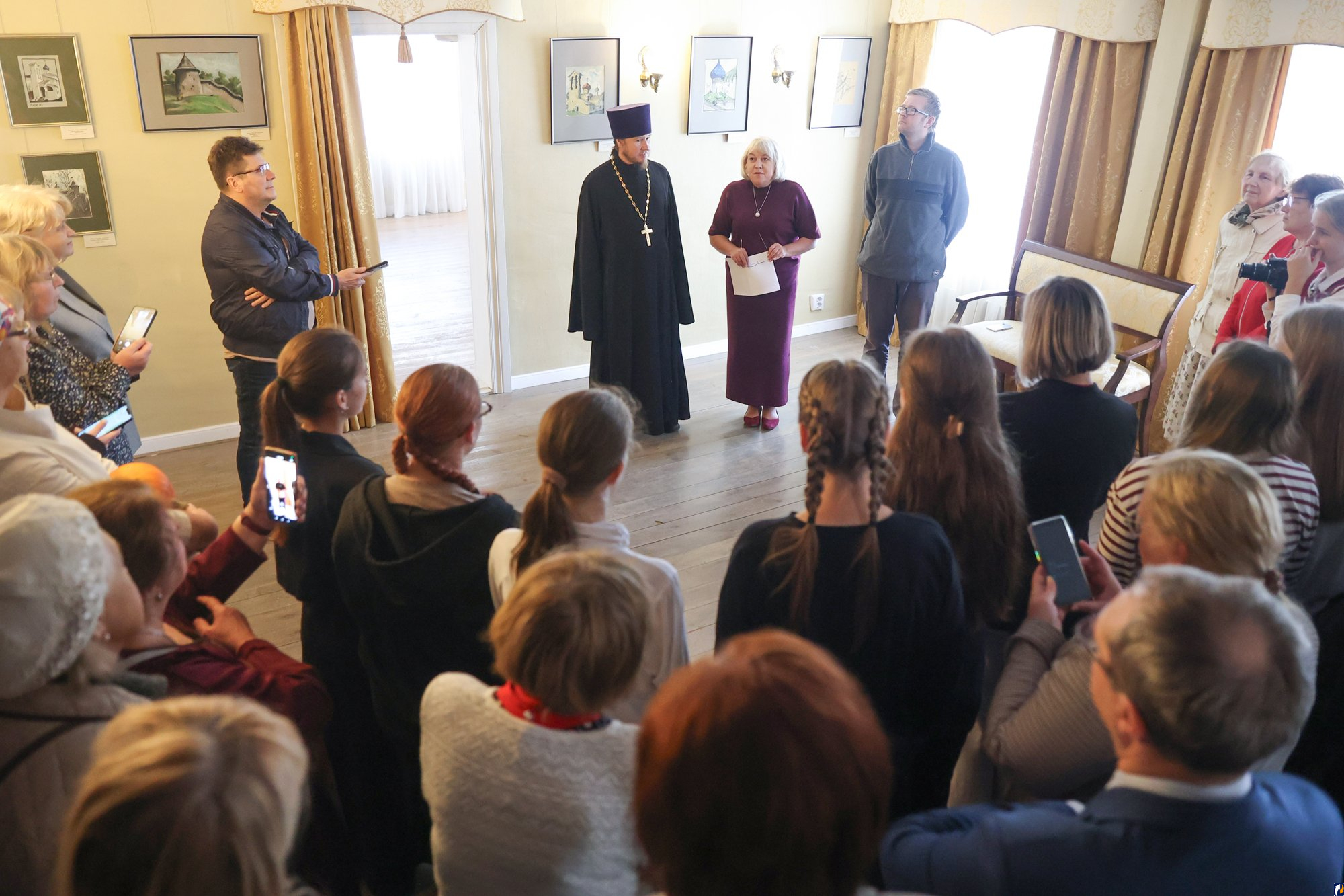 «В этих работах представлена история монастырской жизни, история старчества, наши храмы и святыни, без которых невозможно пройти свой жизненный путь. Поэтому будем идти по своему пути, приобщаясь к родной истории и культуре, – сказал в своей приветственной речи настоятель Никольского собора Изборска подворья Псково-Печерского монастыря отец Димитрий.