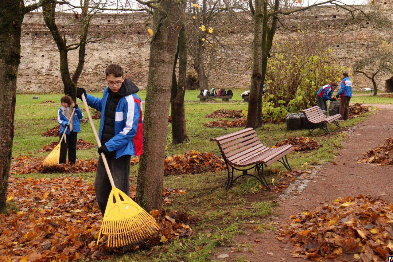 Добровольцы отправились в Изборскую крепость, где наполнили осенней листвой 150 мешков.