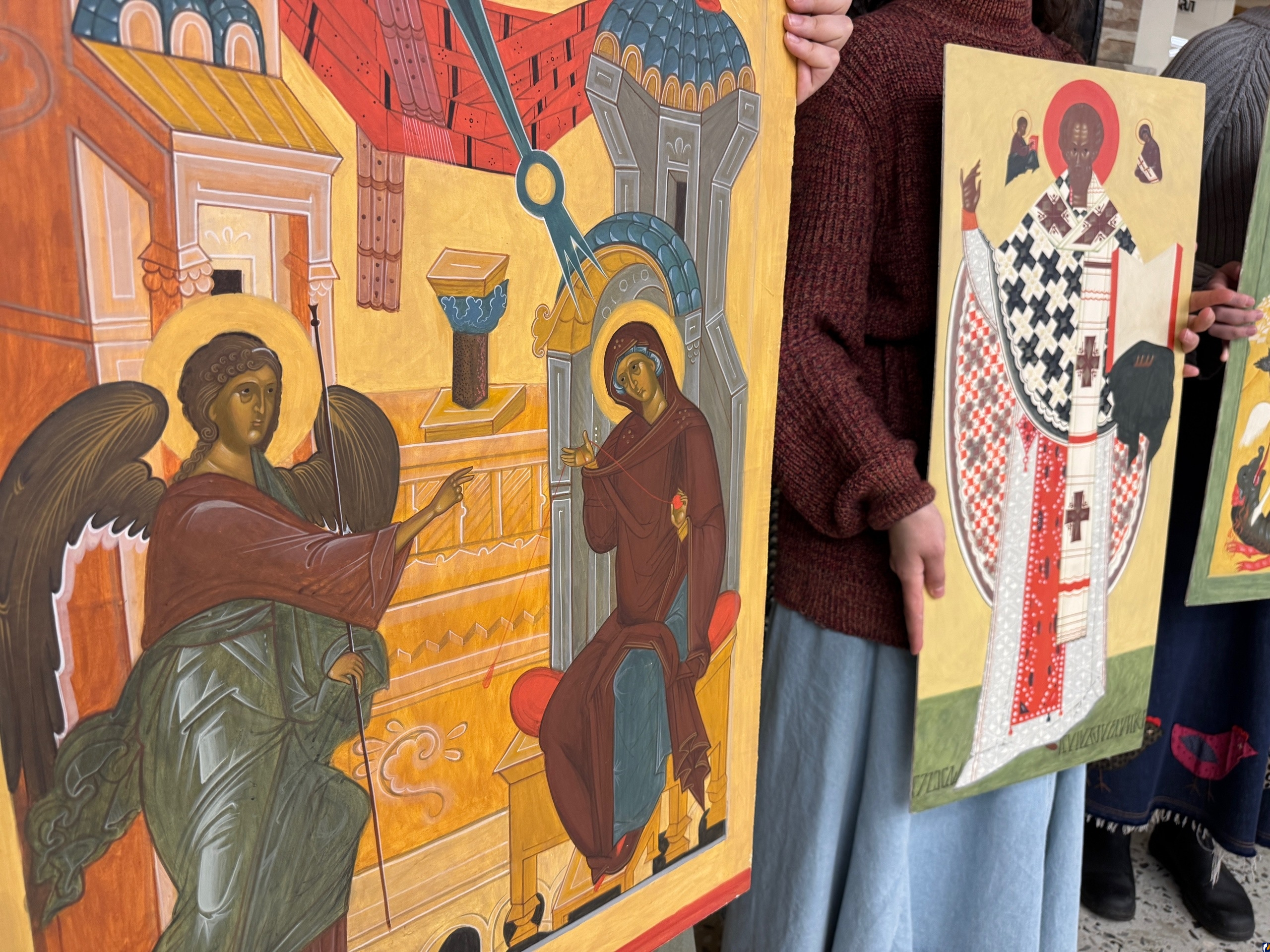 Произведения псковской иконописной школы «Встреча праведных Иоакима и Анны у Золотых ворот» (XVI в.), «Чудо Георгия о змие и мученики Власий, Фрол и Лавр» (XVI в.), «Святой Николай чудотворец в житии» (XV в.) и другие стали первым опытом для юных художников. Они обучались передавать цвет, форму и композиционные решения древнерусской живописи. Работа по воссозданию икон, исполненная с трепетом и любовью, заняла месяц, как поделились сами студенты.