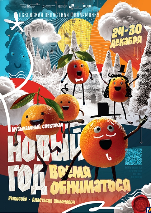 С 24 по 30 декабря Псковская областная филармония приглашает детей и их родителей на новогодний музыкальный спектакль «Новый год. Время обниматься».