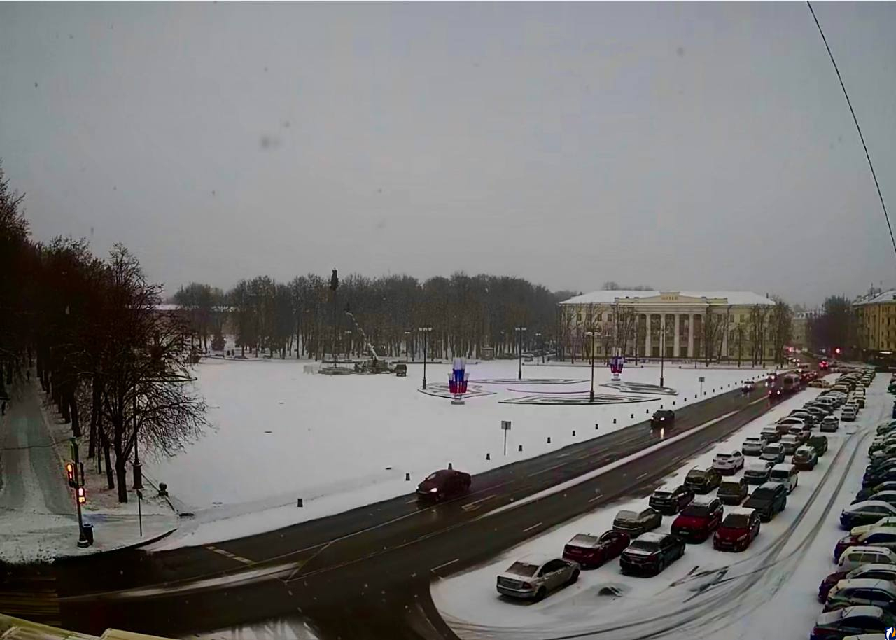 В Великом Новгороде началась подготовка к Новому году: на Площади Победы — Софийской установили главную елку области, а камера видеонаблюдения «Ростелекома» процесс монтажа.