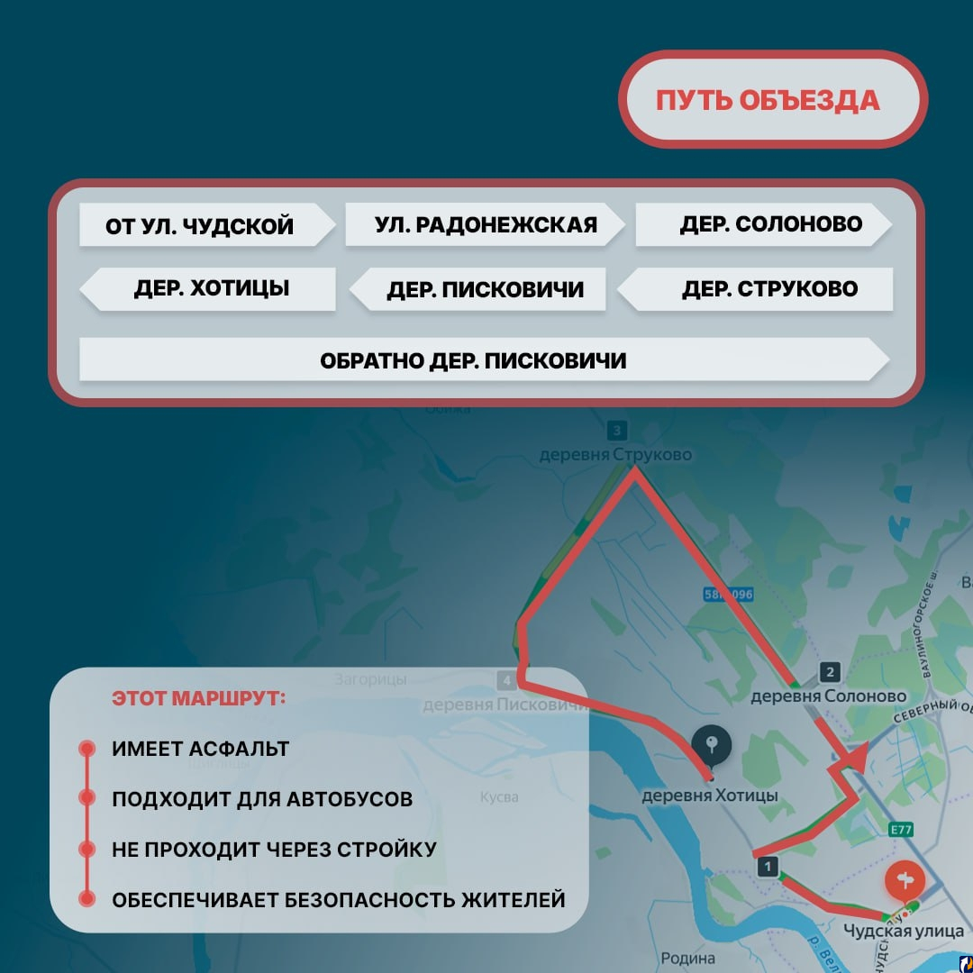 Работы затронут участок от поворота к монументу Ледового побоища до поворота на улицу Невскую в деревне Хотицы и продлятся с 5 декабря 2025 года по 5 декабря 2026 года.