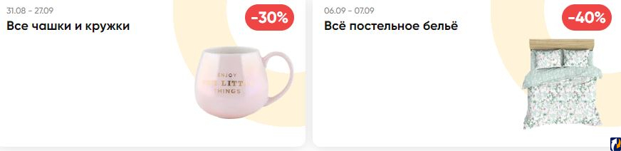 Псковичи могут купить выделенный ассортимент товаров со скидками. Как сообщается на официальном сайте гипермаркетов «Лента», 7 сентября акция действует на все кружки и чашки, а также не постельное белье.