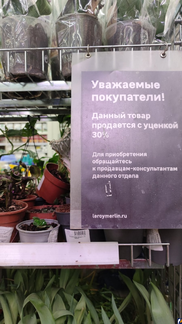 Да, есть отдел с уценкой, но выбирать там растения очень похоже на посещение музея мумий. К сожалению, не заметно, чтобы в разделе уценки растения вообще пытались спасать. Под столом иногда заметны горшки с «утопленниками», цветами, которые реально окунули в ведро с водой в надежде, что они «отопьются». Там оказываются конкретно засохшие цветы, отцветшие орхидеи без товарного вида и другие повидавшие многое бедолаги.