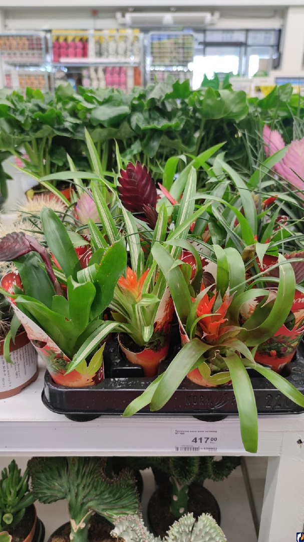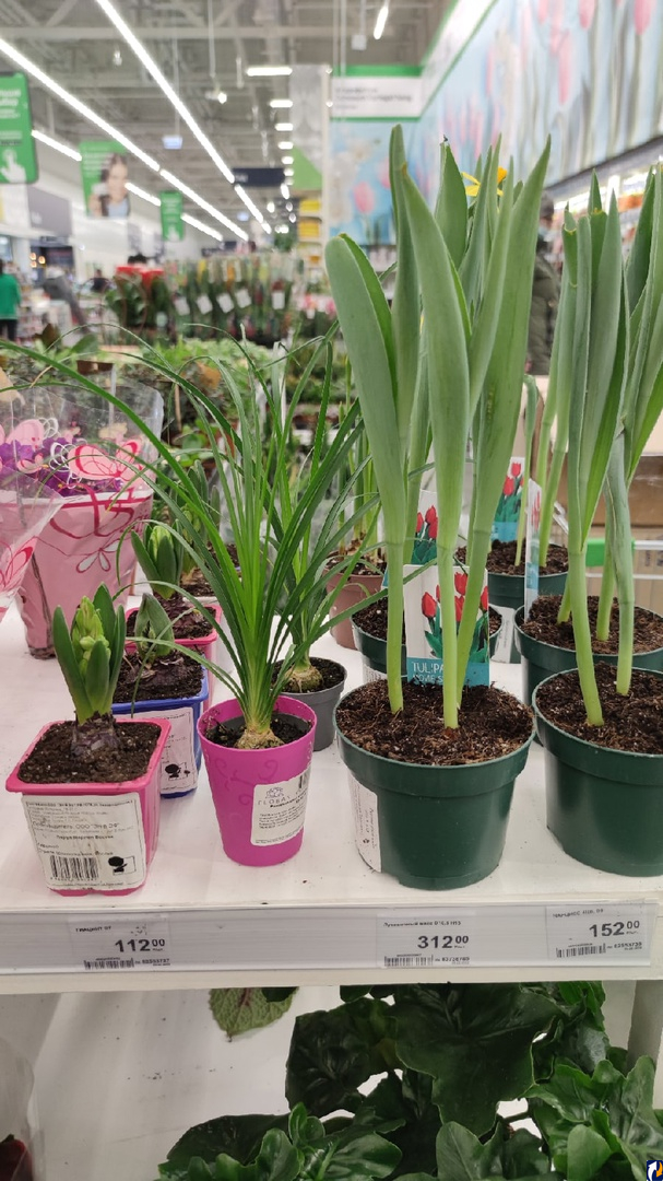 Гипермаркеты не делают различий для растений по виду и особенностям ухода. Здесь более логичен подход таких магазинов, как «Лента», которые на продажу выбирают максимально неприхотливые домашние растения – фиалки, герани, весенние «выгонки» тюльпанов, гиацинтов, нарциссов. Всех их можно поставить на одной полке и поливать одинаково, они это перенесут.