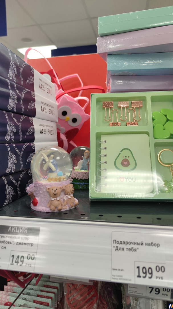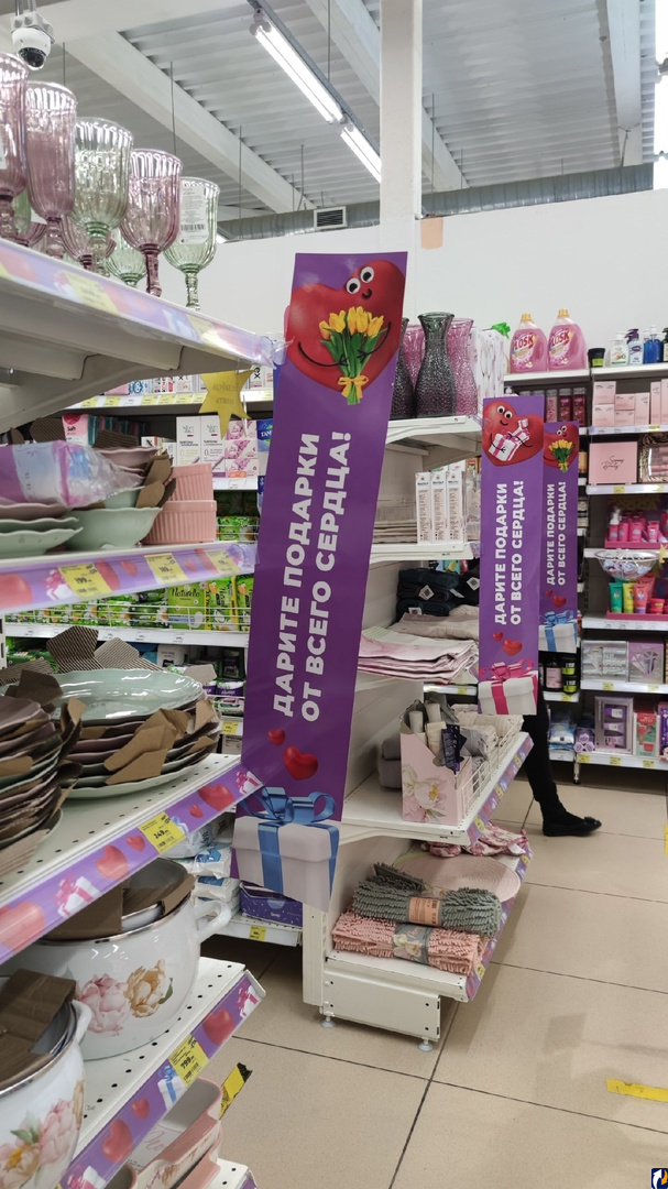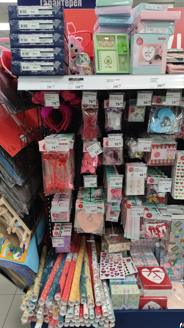 За день до праздника некоторые магазины уже начали менять экспозиции. Например, Fix Price уже потеснил стойки с атрибутикой Дня влюбленных новыми товарами для праздника Дня защитника отечества. Тем не менее, разные милые штуки тут все еще в наличии и на виду.