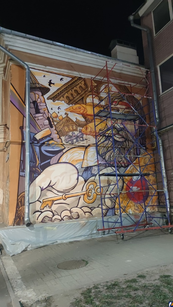 Еще один мурал рисуют в Пскове на доме по улице Труда. Фото